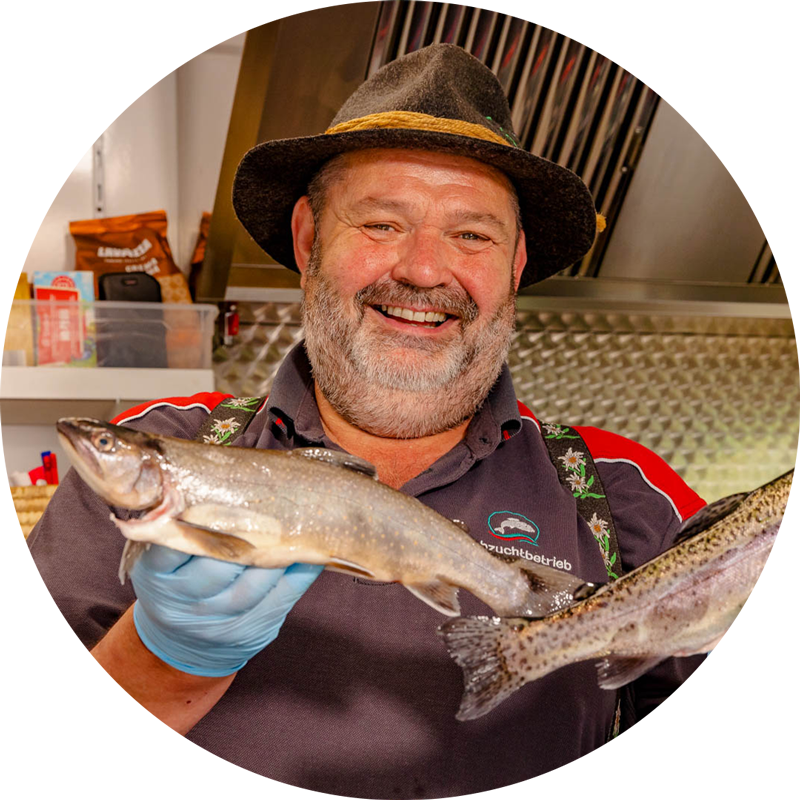 Die Fischzucht wurde Harald Pichler quasi in die Wiege gelegt. Seit mehr als 50 Jahren werden in der Familie Fische gezüchtet. Mit 18 Jahren schlug Harald Pichler allerdings mit der Gründung eines Holzschlägerungsunternehmen einen anderen beruflichen Weg ein. Doch permanente Personalsorgen ließen den sympathischen Fischexperten 2017 in die Fischzucht seines Vaters einsteigen, die er mittlerweile mit seiner Frau zusammen als reinen Familienbetrieb führt. Jährlich werden in 12 Fischteichen im Schötteltal bei Oberwölz an die 15 Tonnen Fisch produziert, wovon etwa 15.000 Stück geräuchert werden.