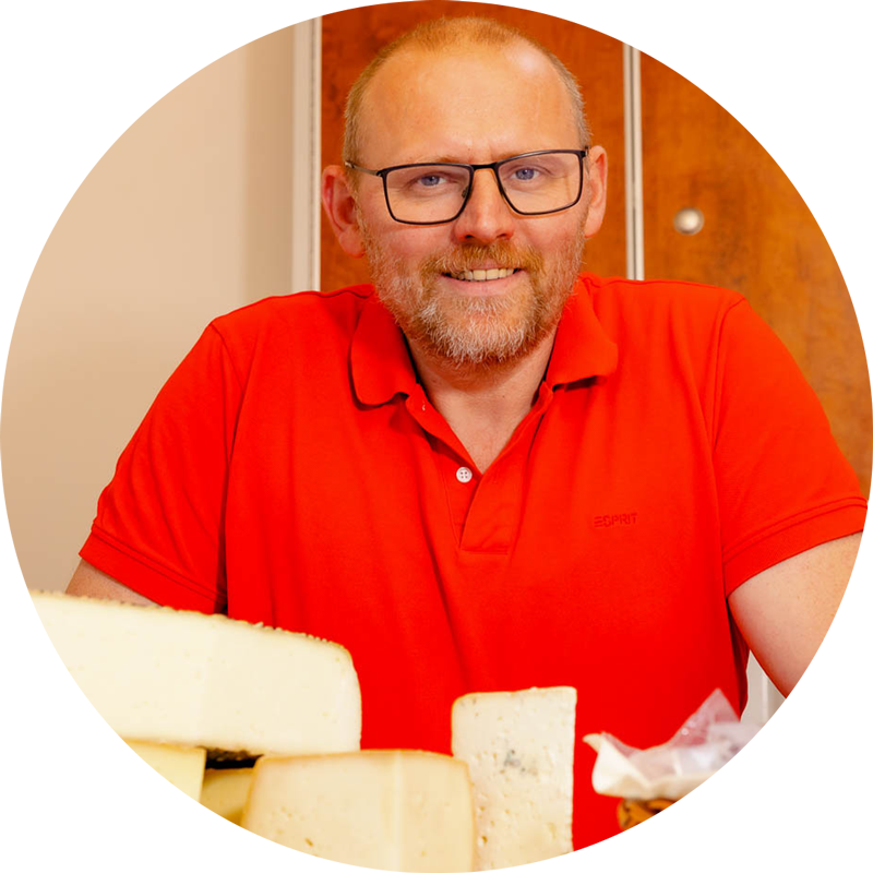 - Verschiedene Käsesorten wie Schafkäse, Hartkäse, schwarzer Prinz, Frischkäse und Salatkäse